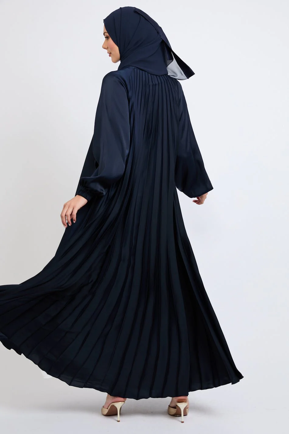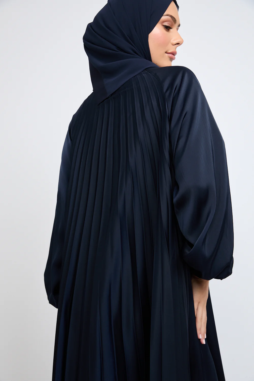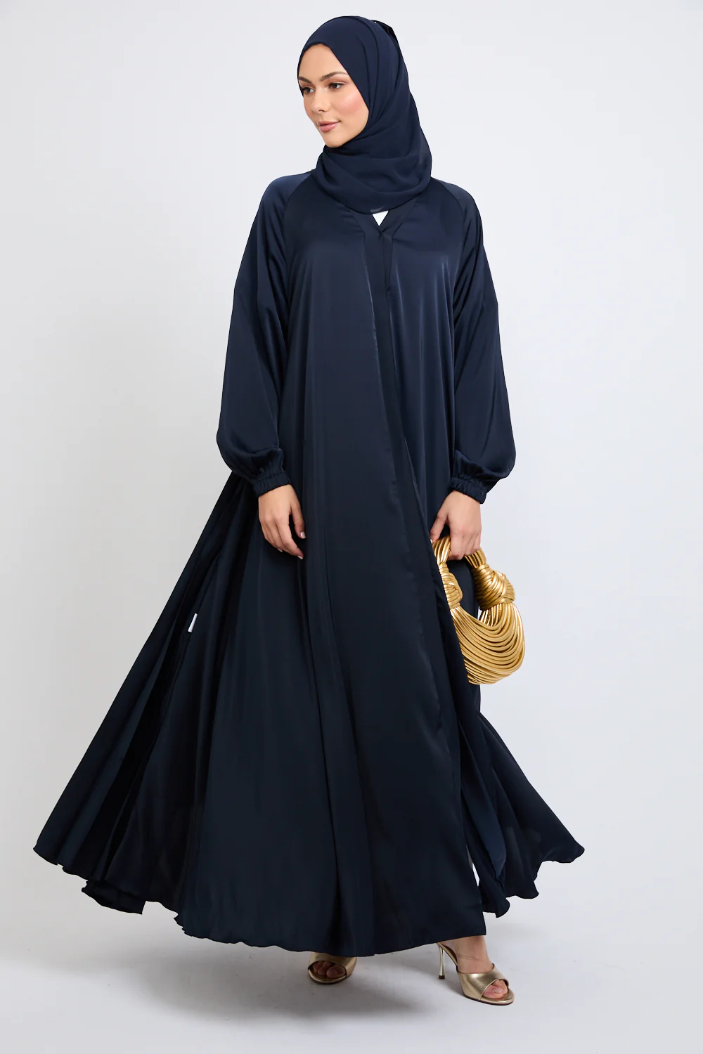 + Free ShippingDiscover the perfect balance of subtlety and elegance with our Navy Umbrella Cut Open Abaya featuring pleated back detailing. This versatile piece is a must-have for any occasion.